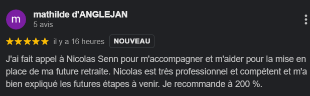 L'analyse des situations complexes, l'élaboration de bilans chiffrés, la proposition de solutions adaptées à vos besoins, l'accompagnement dans les démarches administratives, c'est mon expertise ! Je la mets à votre service pour définir avec vous la solution retraite qui vous conviendra le mieux !